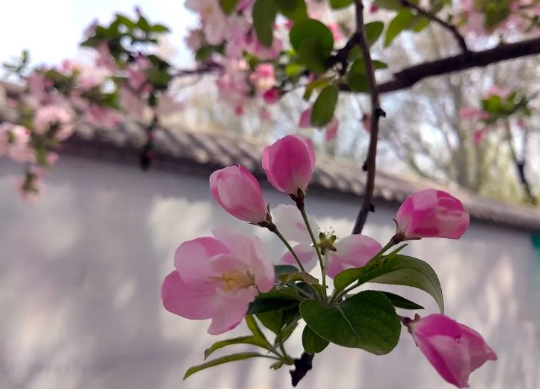 山西日報新媒體記者吳曉慶報道 清明時節,一場綿綿春雨過后,太原杏林七條盛放的海棠讓人們邂逅了一場美不勝收的花海。粉白相間的海棠、富有年代感的木門與灰色的磚墻,優雅中帶著古典,古典中又透著浪漫的氣息,清明小長假,許多市民身著艷麗的服裝,前來這條位于桃園三巷附近的“網紅”小巷打卡留念。
