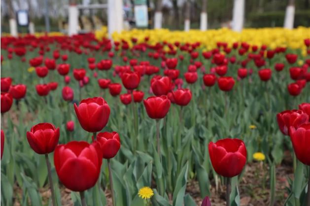 ▲晉陽湖公園百萬余株郁金香進入最佳觀賞期