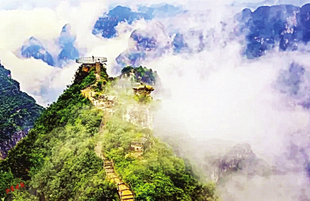 通天峽風景區(qū)的自然景觀包括高山平湖、深潭瀑布、溪水潺潺等,展現(xiàn)了北方山水的雄渾與南國水鄉(xiāng)的柔美。景區(qū)內(nèi)有被稱為“天下第一屏”的天然絕壁、被稱為“亞洲第一索道”的大角度斜式索道,以及“太行山第一峰”的仙人峰等。此外,通天峽還擁有國內(nèi)首創(chuàng)的懸空觀景平臺,站在仙人峰上,可以俯瞰整個通天峽的美景,體驗到“一覽眾山小”的感覺。