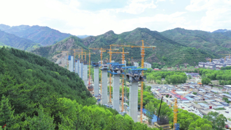 中鐵十一局雄忻高鐵站項目部黨委書記田華章介紹:“我們現在所在的五臺山項目位置就在山西省忻州市五臺縣與河北省保定市阜平縣交界處,線路標段全長15.228公里,總投資23.96億元,項目包括兩座橋梁(五臺山特大橋、清水河大橋)、三座隧道(北太行隧道、利民隧道、五臺山隧道)及五臺山站場等其他相關設施。”