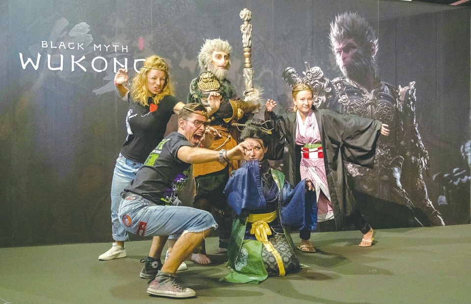 8月22日,人們在德國2024年科隆國際游戲展《黑神話:悟空》拍照區拍照。