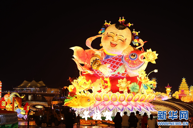 圖為1月13日拍攝的《年娃賀歲》燈組。新華網發(曹鵬 攝)