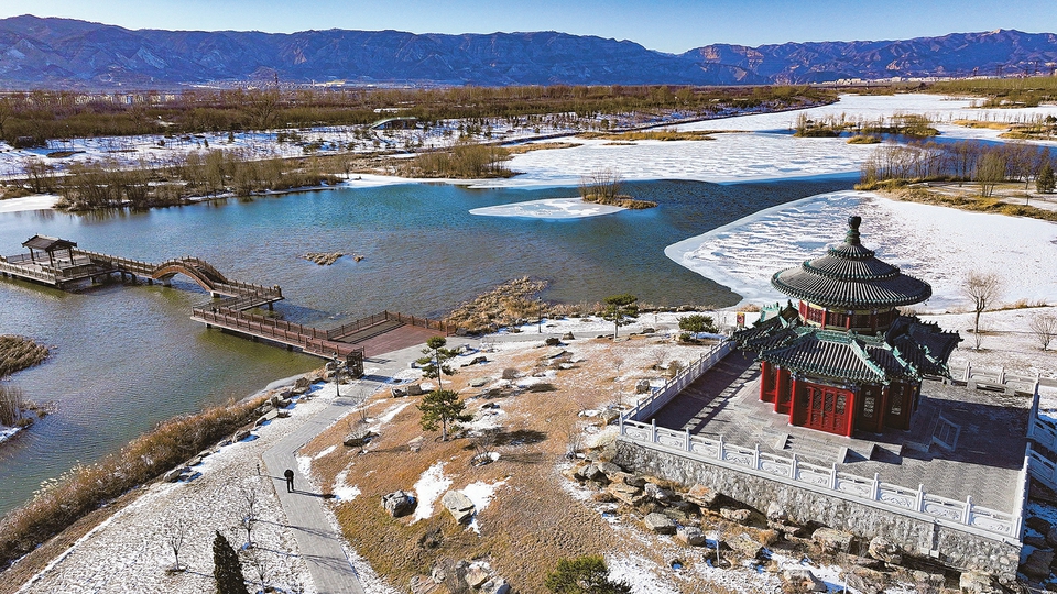 2月4日,初春的太原汾河景區(qū)四期,在微風(fēng)輕撫下宛如夢幻之境。白雪溫柔地覆蓋著河面冰層,晶瑩剔透,岸邊樹木與蜿蜒的汾河相映成趣,行人漫步其間,愜意悠然,盡情享受汾河初春時節(jié)的美好。