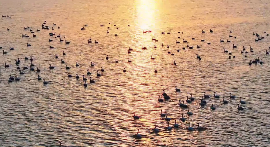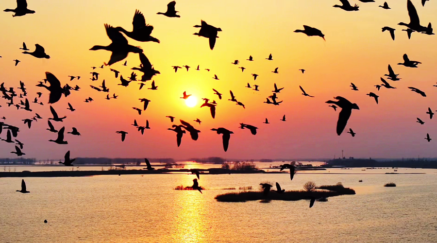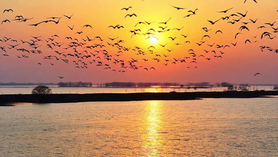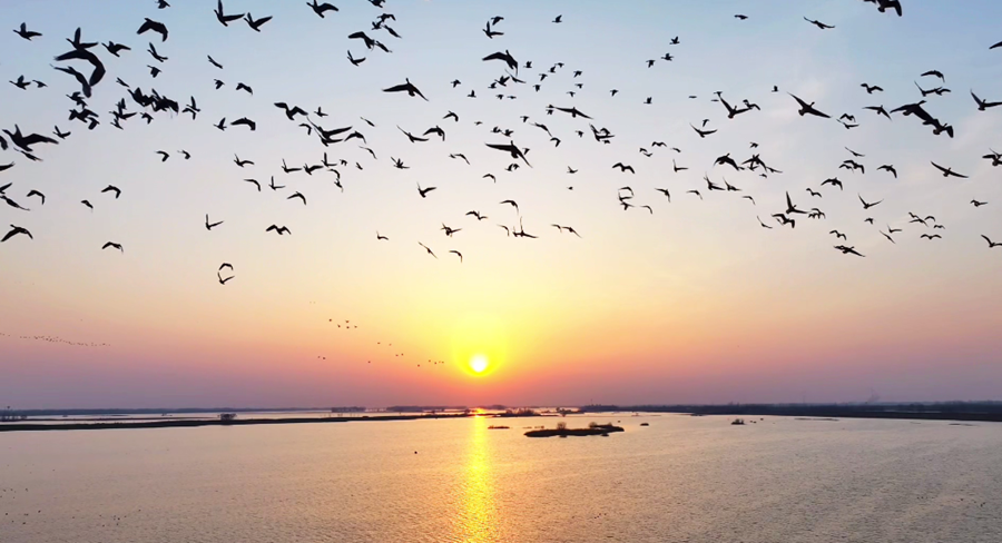 ?初春時分,在夕陽余暉映照下,安徽省潁上縣秋家湖濕地被染上一層夢幻般的色彩。放眼望去,成群飛鳥與漫天霞光融為一體,繪就出一幅壯美而靈動的生態畫卷。(徐紅梅)