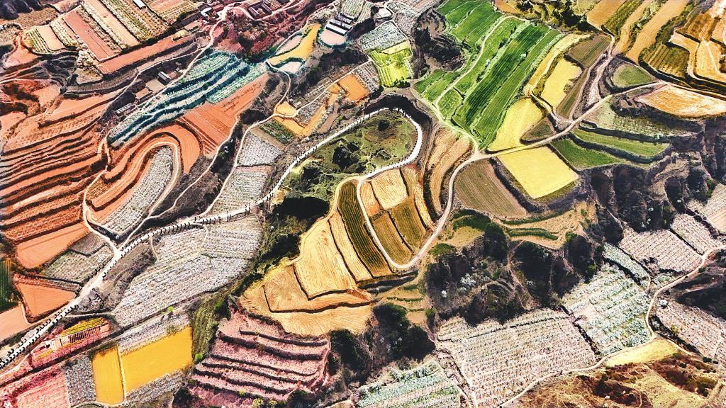 4月7日,在萬榮縣萬泉鄉,成片的梯田層層疊疊、色彩斑斕,山鄉間呈現出一幅蜿蜒層疊的田園美景,宛如詩畫中的世界,美不勝收。