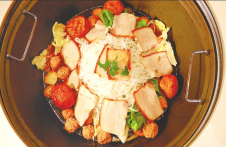 用料講究,特色配菜都要純手工制作。豆腐丸子、肉丸子、燒肉等食材經烹飪后,盡顯治愈味道。熬制數小時的秘制高湯,搭配食客自選食材,經鐵鍋燴制,呈現本真風味。