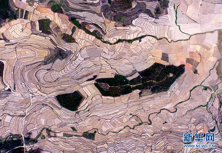 這是3月14日航拍的廣西百色市右江區永樂鎮西北樂村西瓜梯田景色。時下,廣西百色市右江區永樂鎮西北樂村進入西瓜種植護理季節,地膜縱橫交錯的層層瓜田和壯族村落構成一幅美麗的田園畫卷。百色市右江區永樂鎮是廣西有名的西瓜之鄉,全鎮種植西瓜1.5萬畝,年產西瓜2.8萬噸。新華社記者 黃孝邦 攝