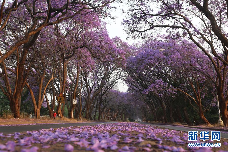在津巴布韋首都哈拉雷,隨處盛開的藍花楹成為靚麗的風景(10月2日攝)。 近日,位于非洲南部的津巴布韋進入春季,全國各地的藍花楹紛紛盛開。津巴布韋風光秀麗,擁有維多利亞瀑布、大津巴布韋遺址等5處世界自然或文化遺產。首都哈拉雷有多處神奇的平衡石景觀,同時也因出色的園藝被稱為非洲“花城”。新華社發(陳雅琴攝)