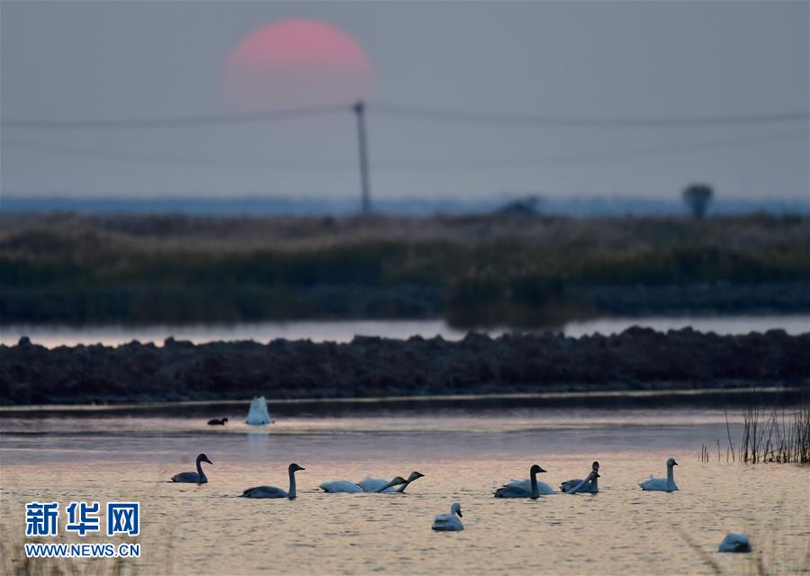 近日,眾多天鵝飛抵天津市濱海新區北大港濕地補給,據護鳥志愿者觀測約有2000只。 新華社記者 岳月偉 攝