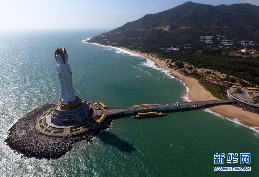 據海南三亞南山景區工作人員介紹,12月以來,每天前來南山景區瞻仰觀音像的游客約有1.5萬。坐落于海南三亞市西南的南山海上觀音圣像高108米,于2005年建成。這座觀音圣像一體三面,構思精妙,莊嚴精美。新華社記者 楊冠宇 攝
