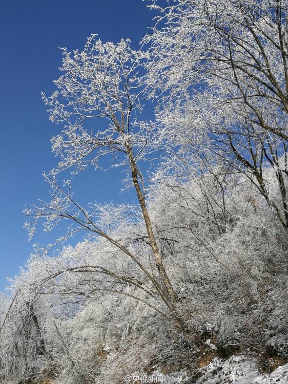 受較強冷空氣影響,秦嶺腹地涼風埡山頂,出現大面積霧凇景觀。玉樹瓊枝,晶瑩剔透,讓涼風埡山頂變得像童話世界一般,美不勝收。 央視記者王志杰 圖片來源:央視新聞微博