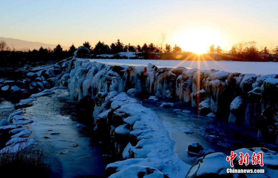 寒冬時節,雪后初晴,地處甘肅河西走廊的張掖市濱河新區人工湖被白雪覆蓋,涓涓細流形成晶瑩剔透的冰瀑、冰掛,成為冬日一景。 陳禮 攝