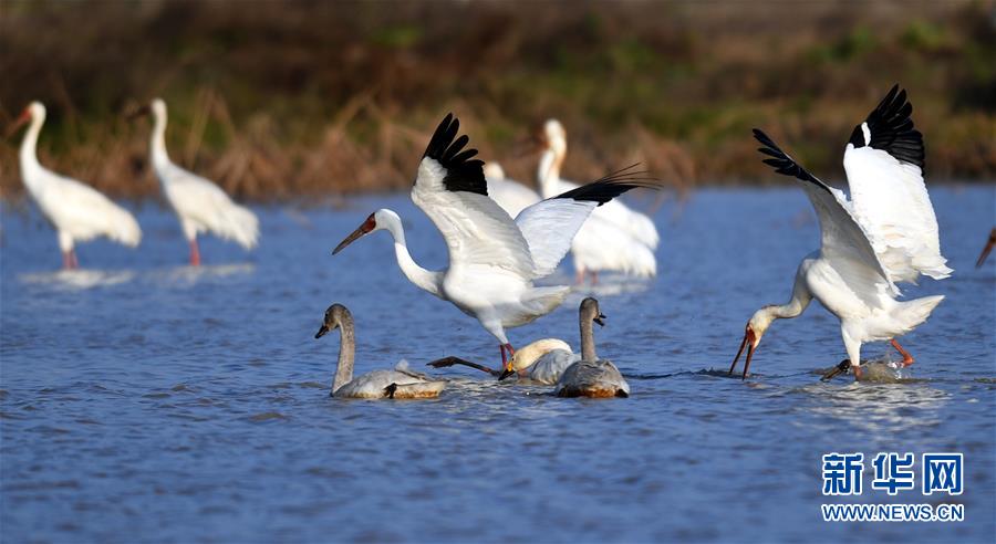 受新一輪北方冷空氣南下影響,江西鄱陽(yáng)湖越冬候鳥(niǎo)數(shù)量激增,一年中最佳的觀鳥(niǎo)時(shí)節(jié)到來(lái)。江西鄱陽(yáng)湖國(guó)家級(jí)自然保護(hù)區(qū)管理局近日監(jiān)測(cè)顯示,飛抵保護(hù)區(qū)的候鳥(niǎo)總數(shù)達(dá)到16萬(wàn)只,主要包括大雁、小天鵝、白鶴、東方白鸛等。