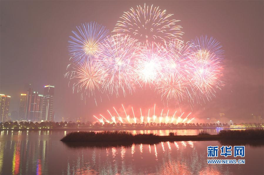 2017年1月1日夜晚,長沙橘子洲附近湘江上空綻放絢麗焰火。當晚,湖南長沙橘子洲舉行焰火晚會慶祝新年到來。整場焰火晚會主題為“多彩星城、魅力長沙”,焰火燃放時間約20分鐘。 新華社記者 龍弘濤攝