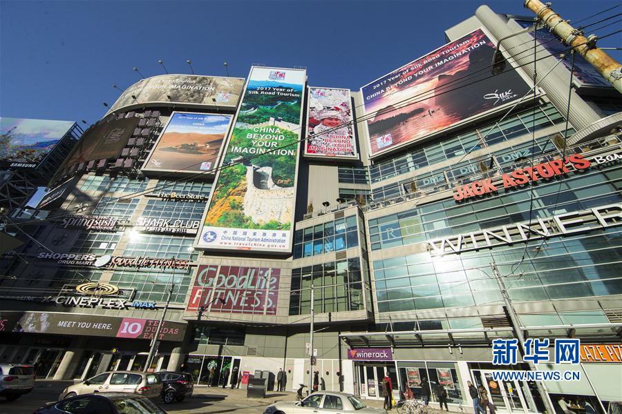 這是1月1日在加拿大多倫多市中心的鄧達斯廣場拍攝的“美麗中國——2017絲綢之路旅游年”主題宣傳廣告牌。從2016年12月26日起,由中國國家旅游局推出、以“美麗中國——2017絲綢之路旅游年”為主題的大型旅游宣傳廣告在加拿大多倫多市中心鄧達斯廣場亮相,向人們展示中國美麗而豐富的旅游資源。整個活動將持續5周。新華社發(鄒崢攝)