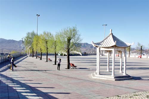 昔日荒山野嶺,今日高山公園。五臺縣自創建省級環保模范縣城以來,縣委、縣政府先后投資數百萬元在往日光禿禿的荒山、荒坡、荒溝上建起了文昌山公園,構成了亭臺與樓閣媲美、芳草與鮮花映襯、廣場與峰巒共存的生態休閑好環境。圖為清晨清幽整潔的山頂公園。(金俊賢 攝)