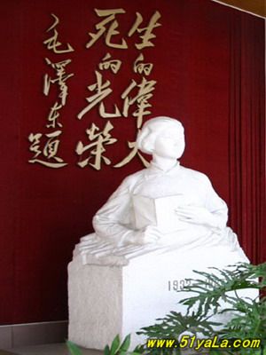劉胡蘭(1930-1947),中國共產黨黨員,1946年參加革命,1947年山西軍閥閻錫山的軍隊突然襲擊時被捕,英勇不屈,在敵人鍘刀下壯烈犧牲。毛澤東曾在當時《晉綏日報》上為之題詞:“生的偉大,死的光榮。”
