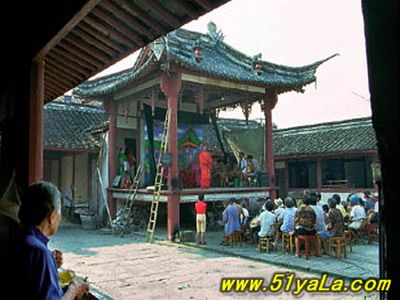 河東地區是我國北方古代戲曲藝術的搖籃,至今保存著多處古代戲劇壁畫、雕刻和戲劇藝術建筑。 牛王廟戲臺在山西臨汾市西北25公里魏村牛王廟內。戲臺建于元至元二十年(1283年),大德七年(1303年)毀于地震,至治元年(1321年)重建,明、清曾予修補。廟內現存廊廡、獻亭、正殿、垛殿等。正殿供三王(牛、王、馬王、藥王),塑像俱存。戲臺為木構亭式舞臺,平面方形,單檐歇山頂,四角立柱各一根,前面及兩側前部敞朗,作為臺口,音響效果較好,背面及兩側后部筑以墻壁,還保留著宋金樂亭古制。臺上無后場之分,前檐用八棱石柱兩根,正面雕牡丹及化生童子,柱側刻創建與重修年代。臺上梁架迭構,額枋、蘭普、斗拱上下三層,形如龐大疏朗的藻井,簡練精巧。戲臺古稱舞亭或舞樓,宋、金時晉南一帶已有,元代相當普遍,但保存至今者較少。戲臺為研究元雜劇在山西一帶發展歷史和金元時期戲臺建造規制的重要資料。廟內獻亭,造型別致,結構精巧,也是一處較為珍貴的古代建筑。 (責任編輯:李冬梅) |