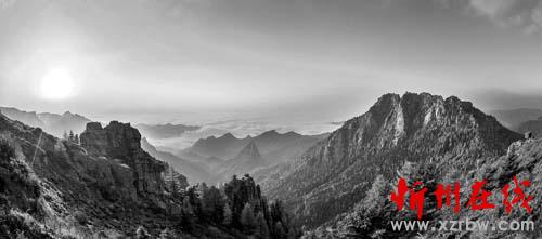 站在峰巔,舉目眺望,但見在初升的陽光照耀下,經過大雨洗滌的綠色山峰,呈現出一種奇異的火紅色彩,別有一番神韻。環顧四周,峰巒重疊,溝壑縱橫,石猴山、臥虎山等30多座海拔2000多米以上的兄弟峰巒,簇擁著陡峭的蘆芽諸山,其勢綿延不絕,氣象磅礴壯觀。云霧在山峰飄蕩,如煙似雨,彌漫四合。尖峭高聳、怪石嶙峋的蘆芽諸山,突出于翻伏騰涌的云霧之上,仿佛蔥蘢茁壯的蘆芽破石而出,生機勃勃,鮮嫩欲滴,翠色宜人。