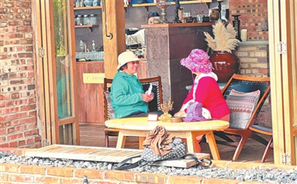 銀發游客在云南保山市隆陽區新寨村聊天。