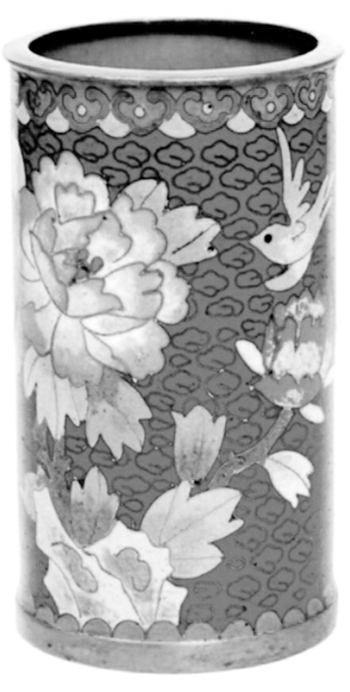 瓷制筆筒始于明代嘉靖、萬歷年間,天啟、崇禎時期的瓷筆筒生產量較大,以青花為主,紋飾有植物、動物、人物等。其形制為直口、平底、腰微束,器口器足處有暗刻紋飾為崇禎瓷筆筒的典型特征。