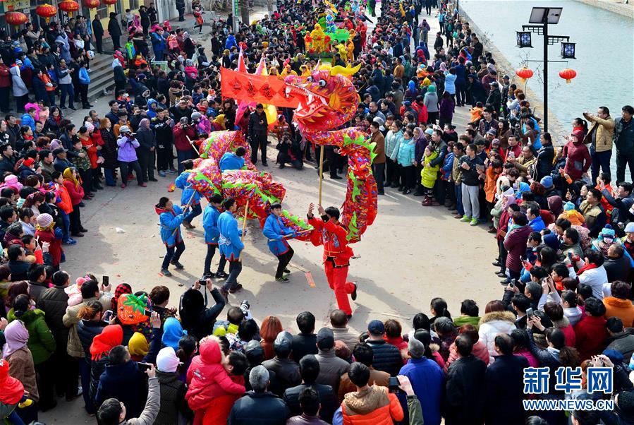 2月21日,社火隊在進行巡游拜年。當日,有著千年歷史的傳統村落——山東省章丘市三德范村組織31個社火隊舉行社火巡游拜年活動,在元宵佳節來臨之際為鄉親們送祝福。新華社記者 郭緒雷攝