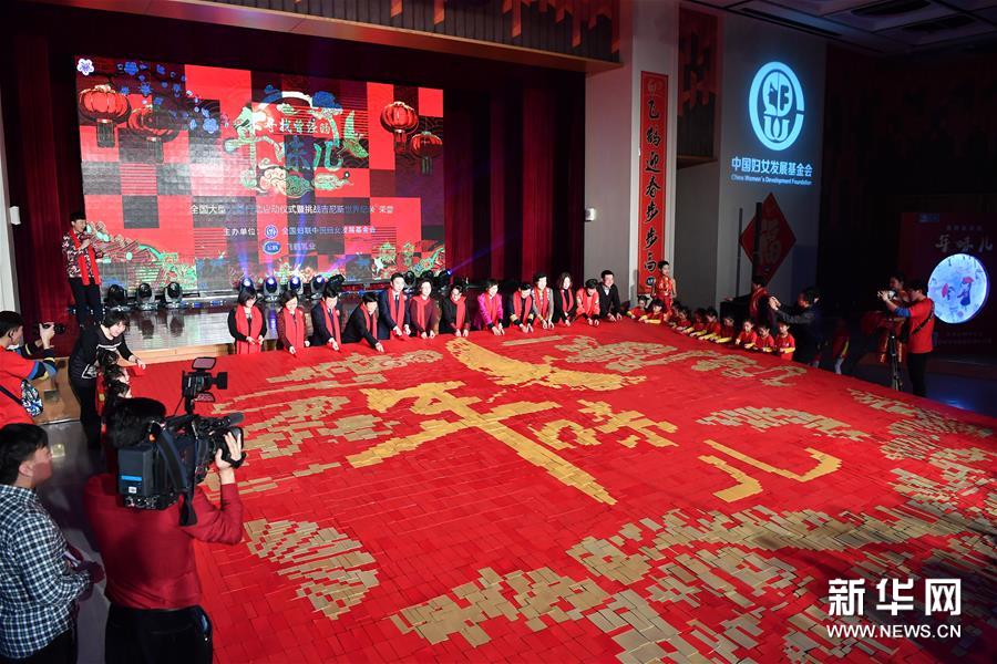 1月11日,“尋找曾經的年味兒”全國大型公益行動在北京中國婦女兒童博物館啟動,通過發放年味兒畫冊、舉辦年味兒趣味活動,弘揚傳統文化,同時為貧困家庭、醫護工作者送去問候與關愛。活動中,由近6萬個紅包拼鋪而成的64平方米“最大紅包拼圖”載入吉尼斯世界紀錄。春節期間,北京、濟南、石家莊、鄭州、哈爾濱等五座城市都將開展尋找年味兒的相關活動。新華社記者 李鑫 攝