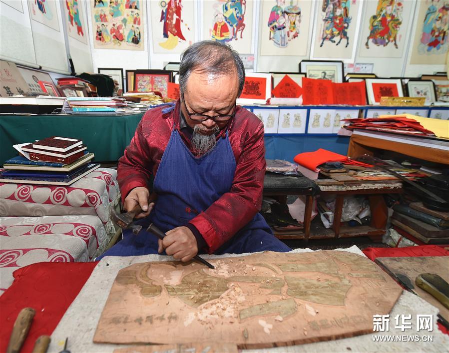 春節期間,山西省新絳縣的絳州木版年畫傳承人吳百鎖忙得不可開交,來購買“吉祥如意”“雄雞一唱天下白”等主題年畫的顧客絡繹不絕。山西省非物質文化遺產絳州木版年畫發端于宋金,興盛于明清,從選料到雕刻再到上色都非常講究,一幅年畫的制作需要七八道精細工序。隨著時代的變遷,目前已鮮有專職雕刻、印制年畫的匠人。擁有嫻熟雕刻技藝的吳百鎖在傳承傳統工藝的基礎上,積極創作現代題材的作品,希望通過自己的創新讓更多少年兒童了解并愛上木版年畫,讓這門幾乎失傳的技藝綻放新的光彩。新華社記者 曹陽 攝