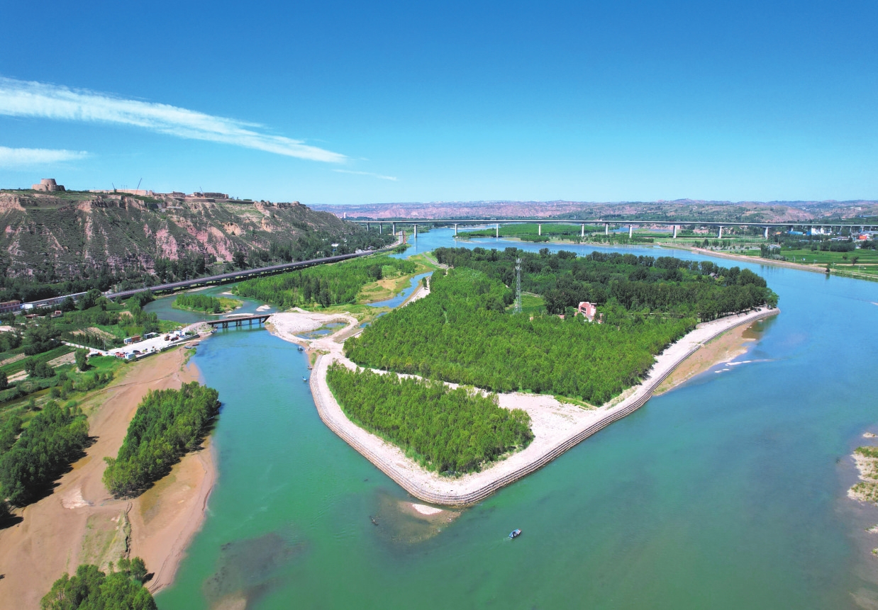 “一灘藏漢史,千年有回聲?!背跻娔锬餅灰娝拿姝h水,如一粒翡翠鑲嵌于濁流之中。人說這里是塞上少有的綠洲,站在灘上,可聞晉、陜、蒙三省的雞鳴。面積僅0.16平方公里,卻承載著兩千多年的傳奇。