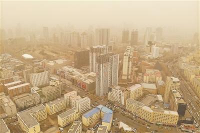 沙塵天氣下哈爾濱市主城區一角。新華社記者 謝劍飛攝