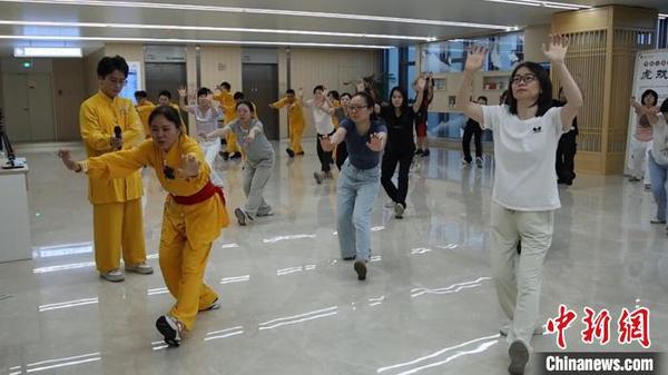 在現場,首期授課老師、浙江省立同德醫中醫內科主任周天梅化身“私教”,一個個動作分步分解教學,“‘虎戲’主要動作的要領是虎撲和虎舉,通過腰部的運動,強壯腰腎功能,通過長期的運動,可緩解長期工作導致的頸椎不適等癥狀,調節身心。”