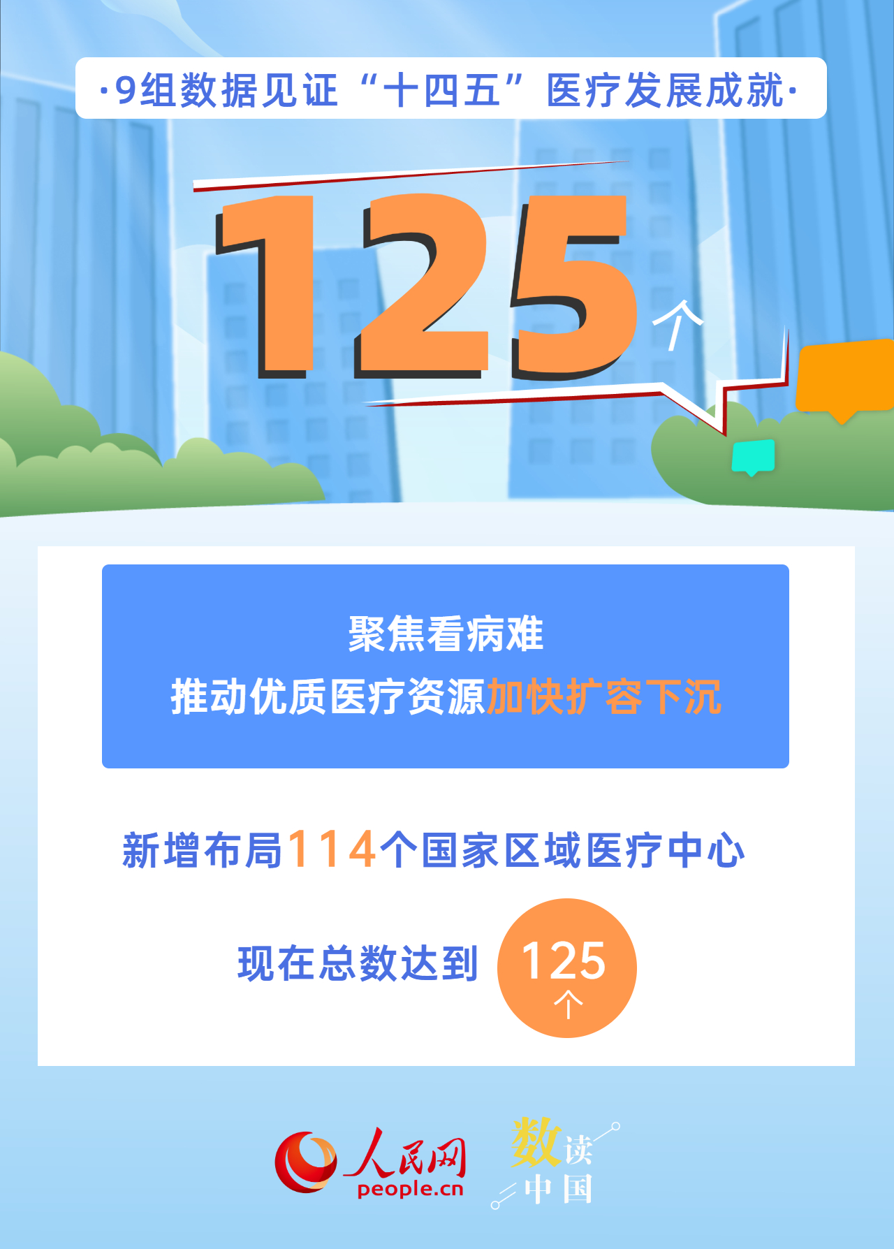 新增布局114個國家區域醫療中心、全國跨省異地就醫直接結算惠及4億多人次、人均預期壽命達到79歲、402種藥品新增進入國家醫保藥品目錄……今年是“十四五”規劃收官之年,“十四五”時期,我國醫療衛生事業發展取得哪些成就?一組海報帶你用數字感知。