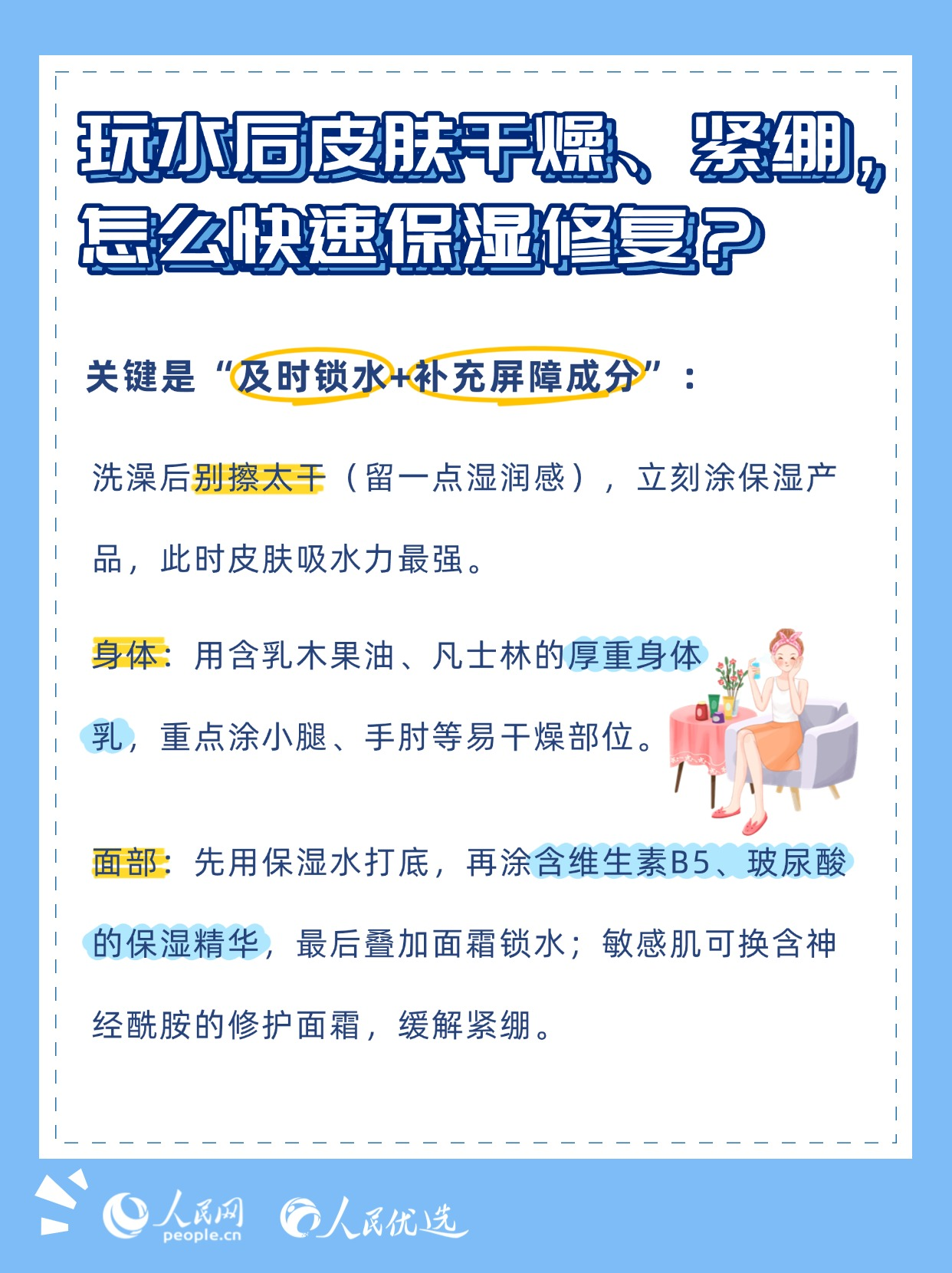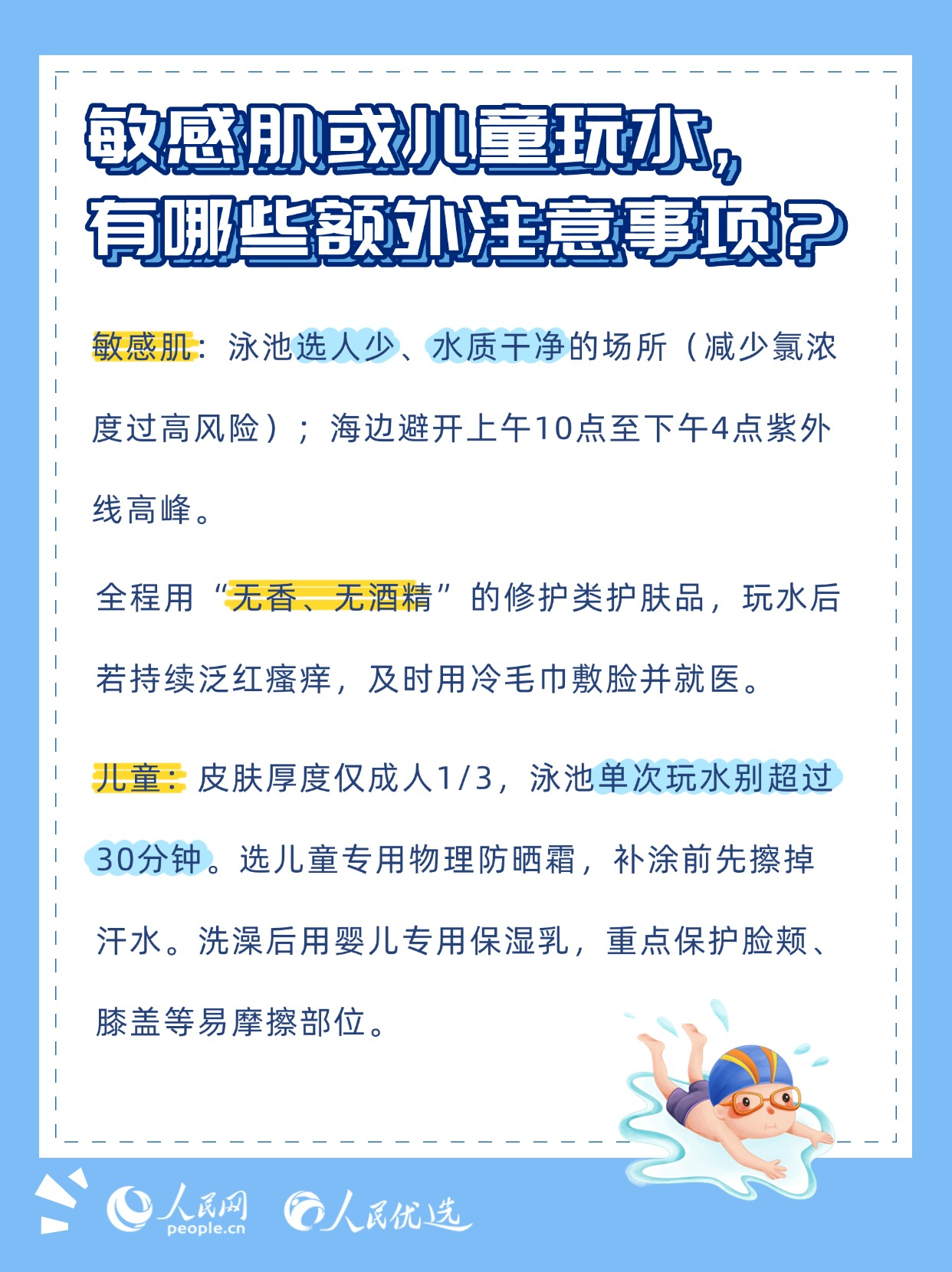 夏日炎炎,無論是泳池里的清涼暢游,還是海邊的逐浪嬉戲,都是驅散暑氣的不錯選擇。但玩水的快樂背后,卻藏著不少傷害皮膚的“陷阱”——泳池的消毒劑、海邊的強紫外線、海水中的高鹽分,稍有不慎就可能引發皮膚干燥、泛紅、曬黑、長斑甚至曬傷。本期《人民優選來了》教你掌握科學的護膚方法,讓你在享受玩水樂趣的同時,保持健康的肌膚狀態。 指導專家:中國中醫科學院西苑醫院皮膚科副主任醫師 佘遠遙