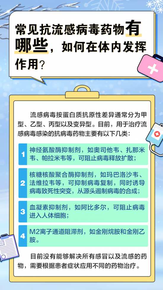 冬季氣溫驟降,流感來(lái)勢(shì)洶洶。流感是一種由流感病毒引起的急性呼吸道傳染病,在人群中有較高的發(fā)病率。流感患者通常會(huì)出現(xiàn)發(fā)熱、咳嗽或咽痛等癥狀。部分癥狀較重的患者還會(huì)感到頭痛、惡心、肌肉酸痛,甚至出現(xiàn)肺炎等并發(fā)癥,需要及時(shí)就醫(yī)用藥治療。那么,常見(jiàn)的抗流感藥物有哪些?抗病毒藥物治療的最佳時(shí)間是什么?怎樣服藥更科學(xué)有效?本期請(qǐng)到中國(guó)醫(yī)科大學(xué)附屬第一醫(yī)院感染性疾病一科主任張靜萍教授為大家解疑釋惑。