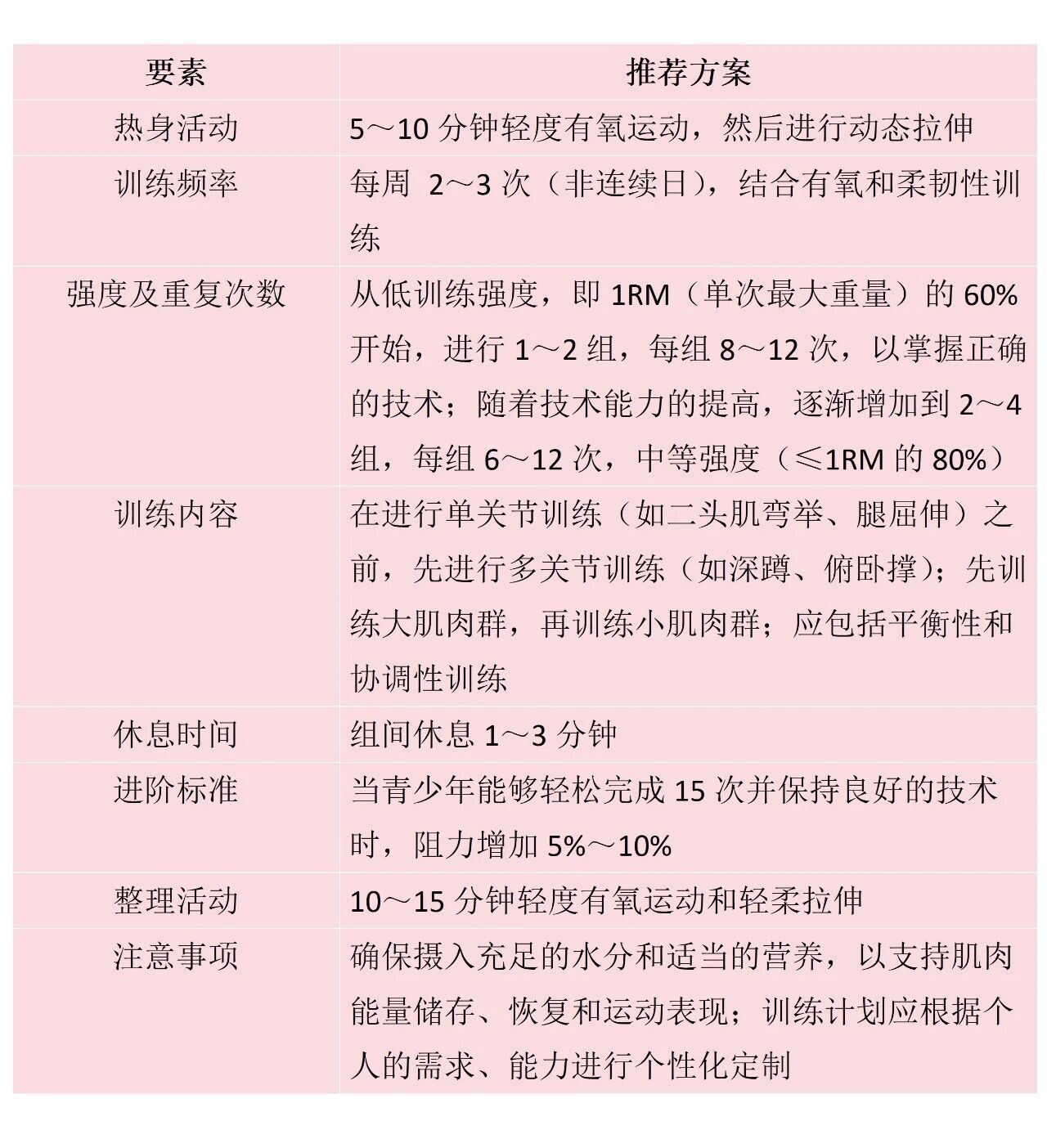 青少年的肌肉力量訓練,推薦練習以下內容。