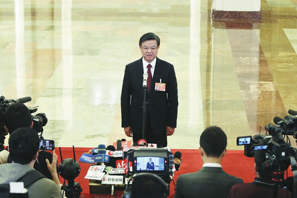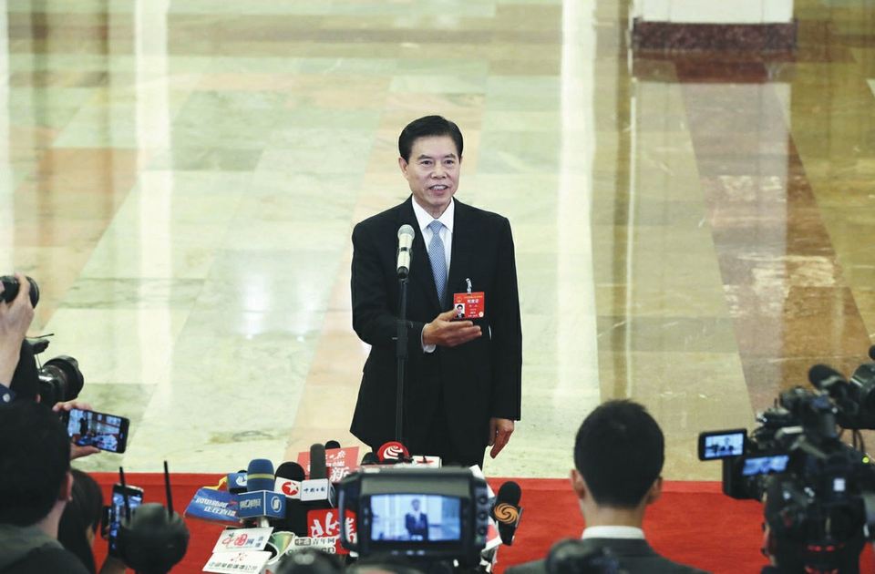 3月5日上午,十三屆全國人大二次會議開幕會結束后,第二場“部長通道”舉行。銀保監會主席郭樹清、商務部部長鐘山、交通運輸部部長李小鵬、工信部部長苗圩、海關總署署長倪岳峰、國家市場監管總局局長張茅、農業農村部部長韓長賦、國臺辦主任劉結一先后亮相,回應熱點問題。