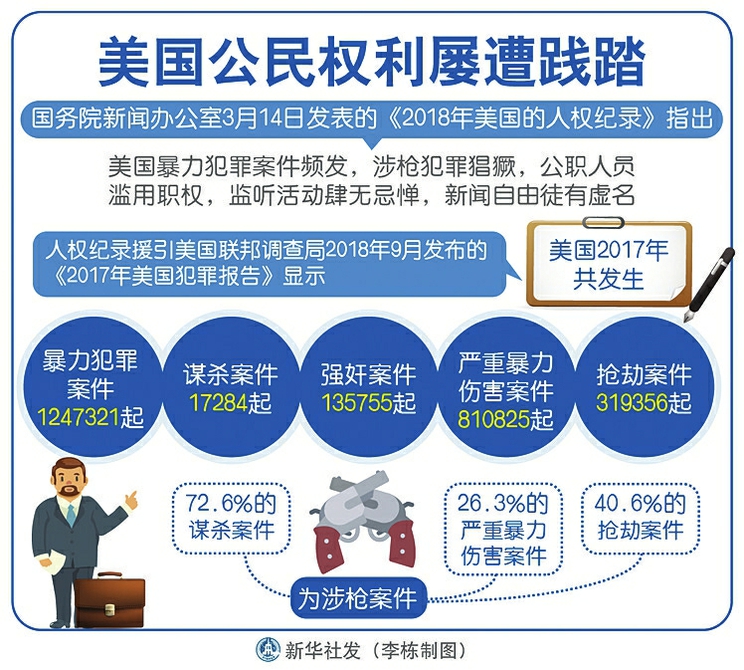 國務院新聞辦公室14日發表《2018年美國的人權紀錄》《2018年美國侵犯人權事記》,對美國侵犯人權的狀況進行揭露。