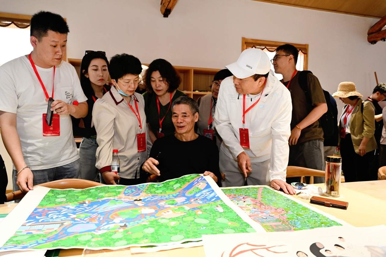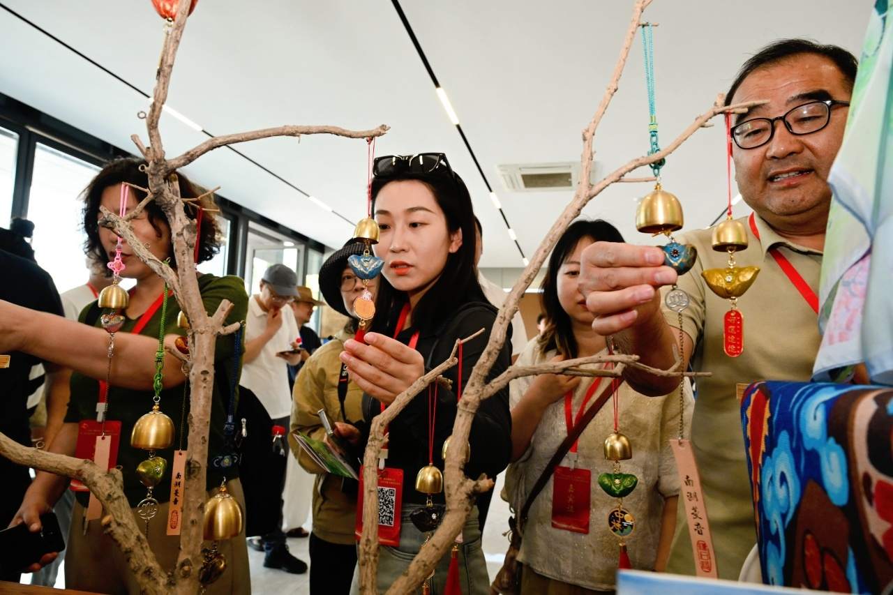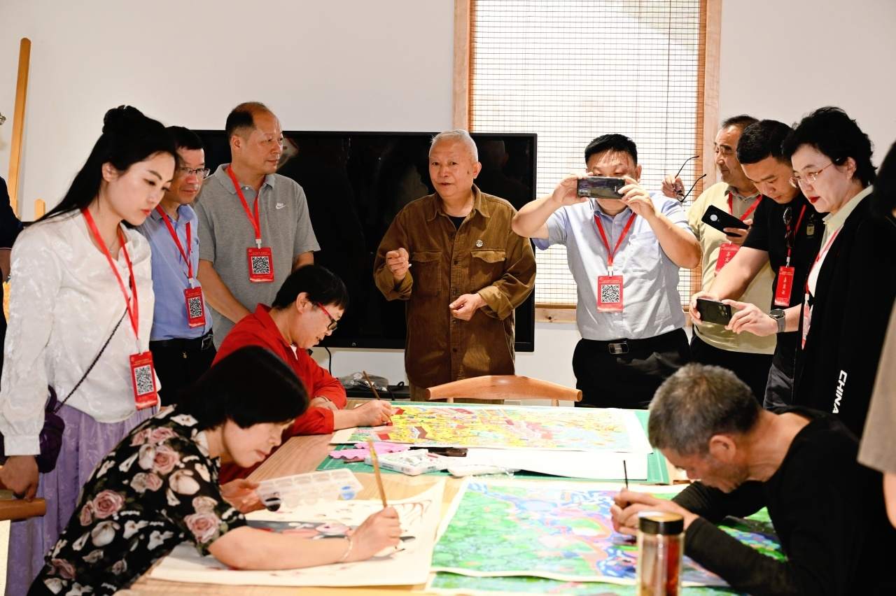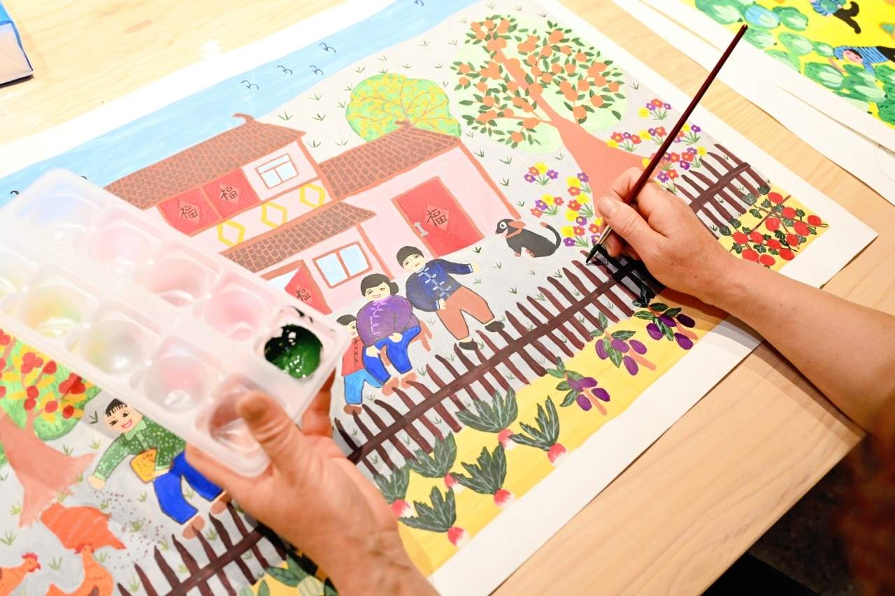 在農民畫藝術展示空間,記者們在村民的農民畫作品中感受到他們濃烈的幸福感與獲得感;“假日農民畫非遺課堂”、農民畫熱轉印體驗等一系列研學課程、體驗項目的開展,又讓大家真切體會到農民畫與產業的有機融合;一樓大廳“驛站”里,基于秀洲農民畫開發的各式文創產品令人忍不住就想“買買買”……