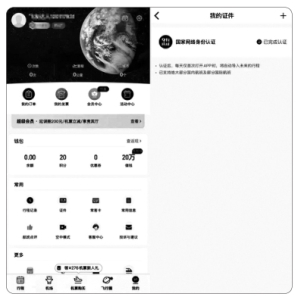 以某航旅App為例,點擊“國家網絡身份認證”圖標進行關聯登錄,便可以不再輸入身份證號碼。登錄完成后,點擊證件可看到顯示已用國家網絡身份認證完成認證。