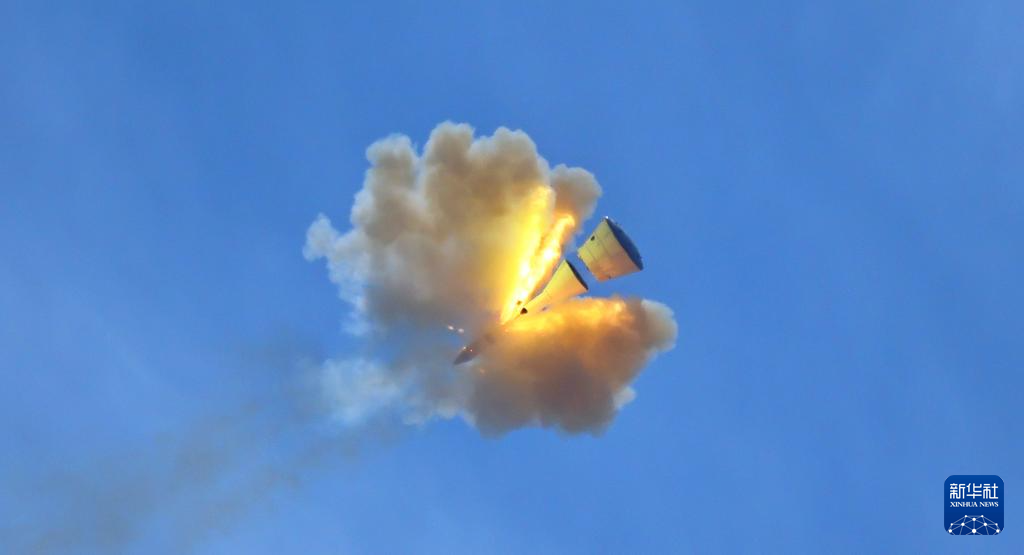 6月17日,我國在酒泉衛星發射中心成功組織實施夢舟載人飛船零高度逃逸飛行試驗,標志著我國載人月球探測工程研制工作取得新的重要突破。新華社發(王衡 攝)