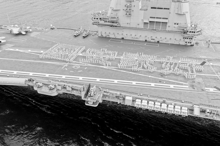 3日上午8時許,山東艦和3艘屬艦組成縱隊隊形,在香港特區政府船隊、駐香港部隊艦艇、直升機伴航伴飛下,駛入維多利亞港。山東艦飛行甲板上,艦載戰斗機、直升機列陣,700余名海軍官兵身著白色軍裝,列隊排出“國安家好”4個大字,表達愛國愛港的濃濃深情和對香港同胞的美好祝福。海上,香港特區消防船用“水門禮”歡迎編隊;空中,香港特區伴飛直升機現場直播編隊進港實況;岸邊的民眾隔海向來訪官兵揮手致意。按照預定方案,山東艦和延安艦在維多利亞港西錨地錨泊,湛江艦和運城艦停靠昂船洲軍營碼頭。