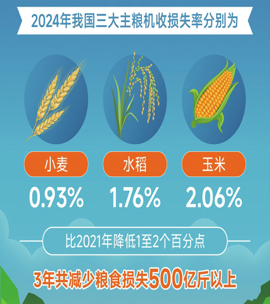 在加工利用方面,我國制定實施食用米胚、大豆蛋白等加工技術規范,合理控制加工精度,抓好副產物綜合利用,糧油加工損失率降低到1%以內;推進豆粕減量替代行動,普及推廣低蛋白日糧技術,飼料中豆粕用量占比從2017年的17.9%降低到2024年的13.7%,相當于節約豆粕近2000萬噸。