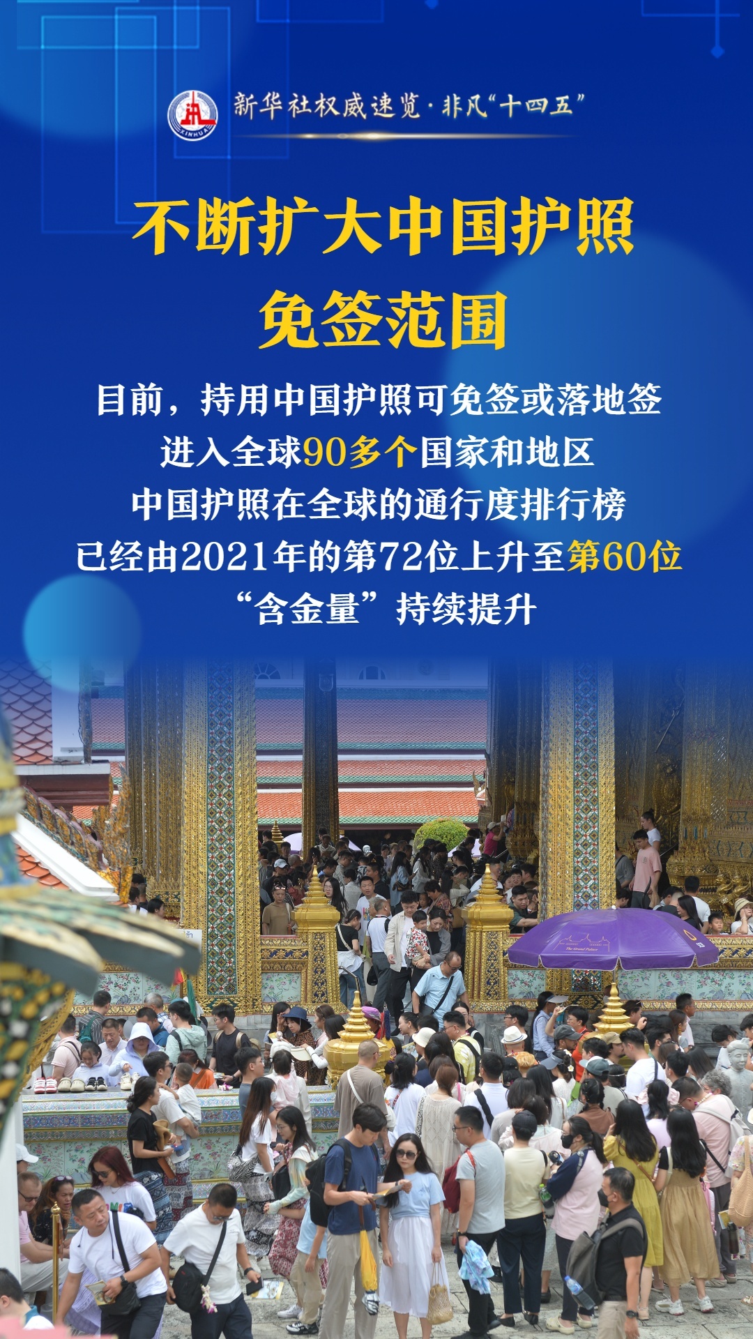 ?“全程網辦”實現了辦理出入境證件“一次都不跑”,中國公民“走出去”更加便利;中國護照在全球的通行度排行榜由2021年的第72位上升至第60位,中國護照“含金量”持續提升。30日舉行的“高質量完成‘十四五’規劃”新聞發布會上,國家移民局介紹了在服務中國公民“走出去”方面取得的成就。通過這組海報,一起來看看。