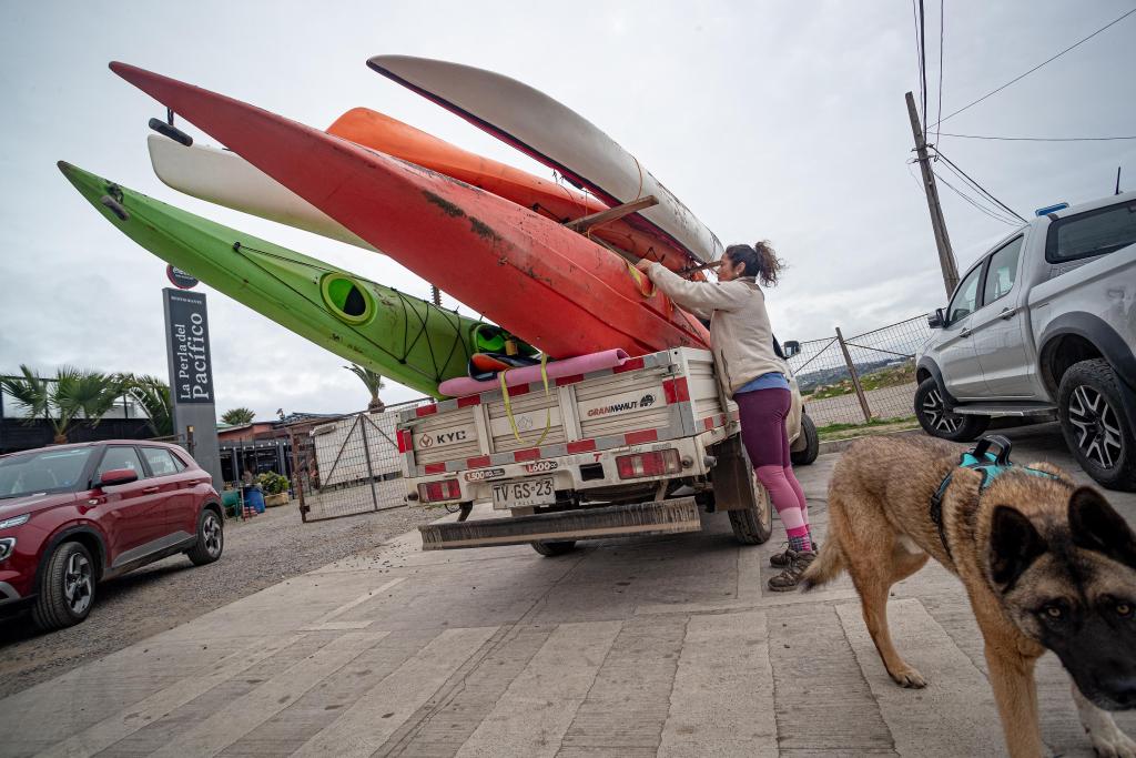 7月30日,在智利瓦爾帕萊索大區康孔市,一名女士準備向安全地帶撤離。新華社發