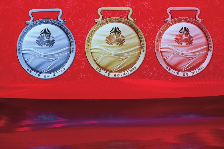 殘?zhí)貖W會(huì)獎(jiǎng)牌“同心暖”也揭開面紗。獎(jiǎng)牌頂端掛鉤采用嶺南特色“鑊耳屋”造型,獎(jiǎng)牌正面鐫刻會(huì)徽和連綿海浪紋,背面以港珠澳大橋?yàn)楸尘埃槲镏腥A白海豚浮雕高擎火炬,并附有盲文,讓視障運(yùn)動(dòng)員能夠親手觸摸這份榮耀。