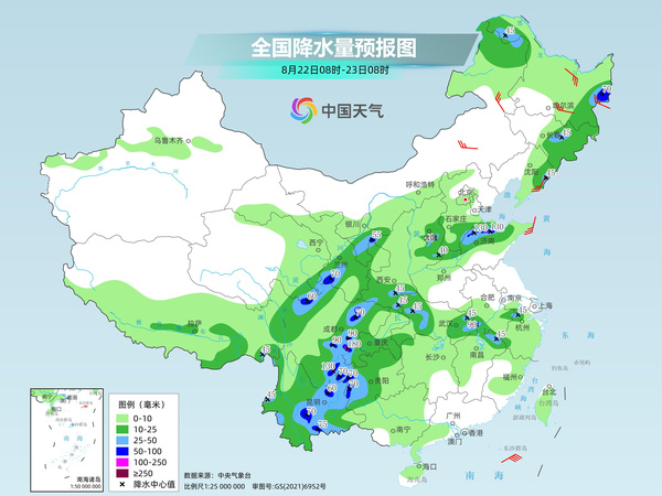 后天,東北地區中南部、華北南部、黃淮大部、四川盆地、云南北部、華南南部沿海、海南島、西藏東南部等地部分地區有中到大雨,其中,吉林東南部、遼寧中東部、四川盆地西南部、海南島中東部等地部分地區有暴雨或大暴雨。