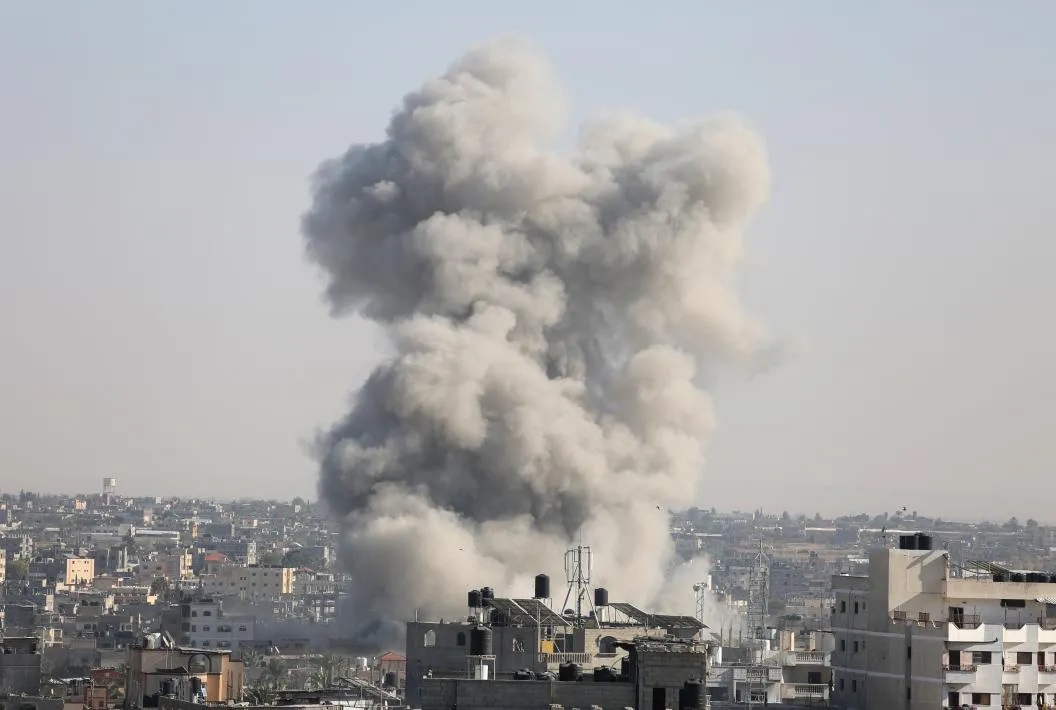 ??2023年10月26日,以色列空襲造成的濃煙從加沙地帶城市拉法城中升起。新華社發(哈立德·奧馬爾攝)
