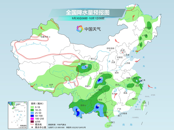 后天,西南地區東部和南部、青海東部、甘肅中部、陜西南部、江南東北部、廣西中西部、東北地區中部和南部等地部分地區有中到大雨,其中,陜西南部、四川盆地北部、云南西南部、廣西西北部等地部分地區有暴雨。