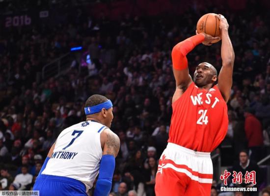 2月15日,2016NBA全明星正賽在多倫多開打,科比·布萊恩特的最后一次全明星賽以勝利而結束,西部以196-173大勝東部,西部創下了全明星賽得分紀錄,兩隊總得分也刷新了去年創下的紀錄。圖為科比跳投。