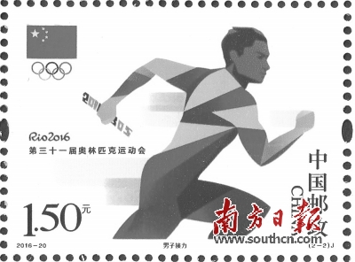 據介紹,第一枚郵票選擇排球比賽經典瞬間,人物具有動感,漸變色條也帶出運動的速度感,郵票顏色特別選擇了代表巴西的綠、黃、藍三色。而第二枚郵票選擇了男子接棒后奔跑瞬間,顏色以代表中國的紅、黃色為主。郵票由北京郵票廠采用影寫版印制,特殊工藝運用體現明信出郵票動感和科技感。